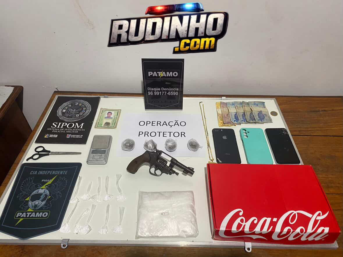 PATAMO PRENDEU HOMEM EM FLAGRANTE POR TRÁFICO DE DROGAS NO MARABAIXO III. UM REVÓLVER FOI APREENDIDO NA AÇÃO.