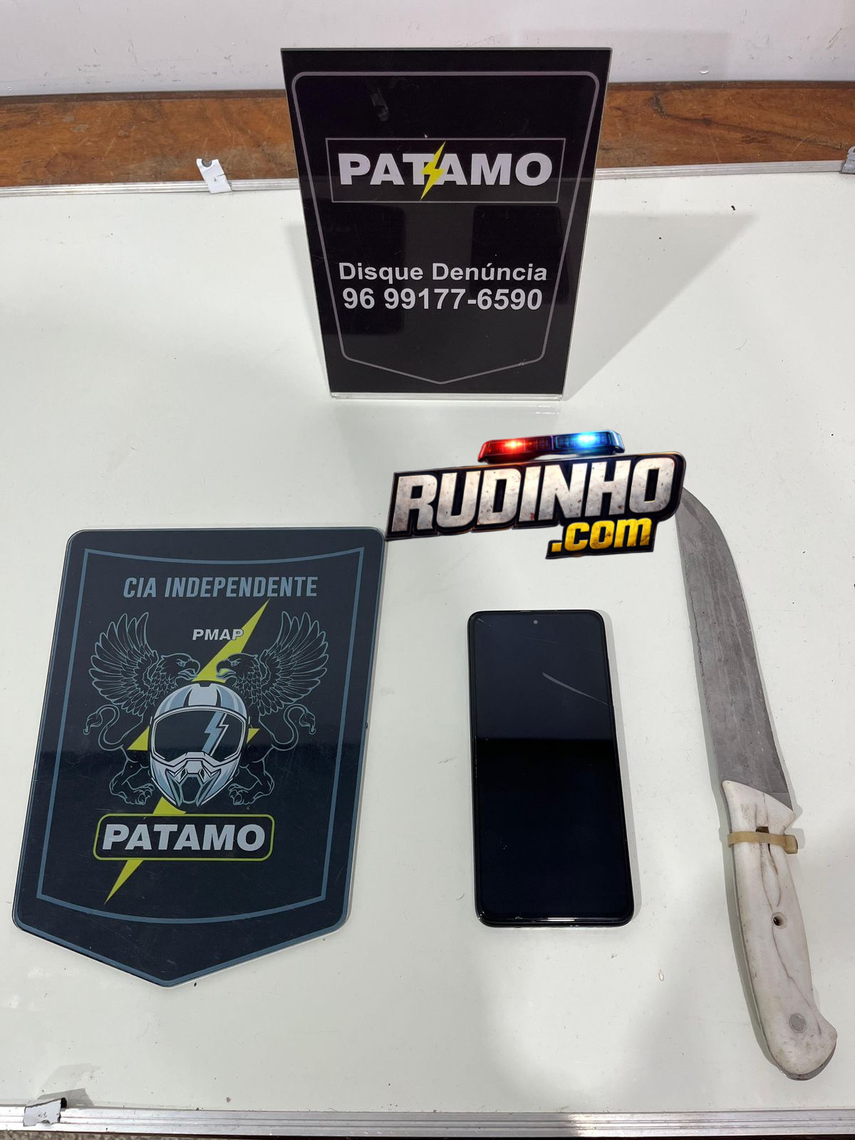 HOMEM FOI PRESO PELA PATAMO APÓS COMETER ASSALTO COM EMPREGO DE ARMA BRANCA. O TELEFONE CELULAR DA VÍTIMA FOI RECUPERADO NA AÇÃO.