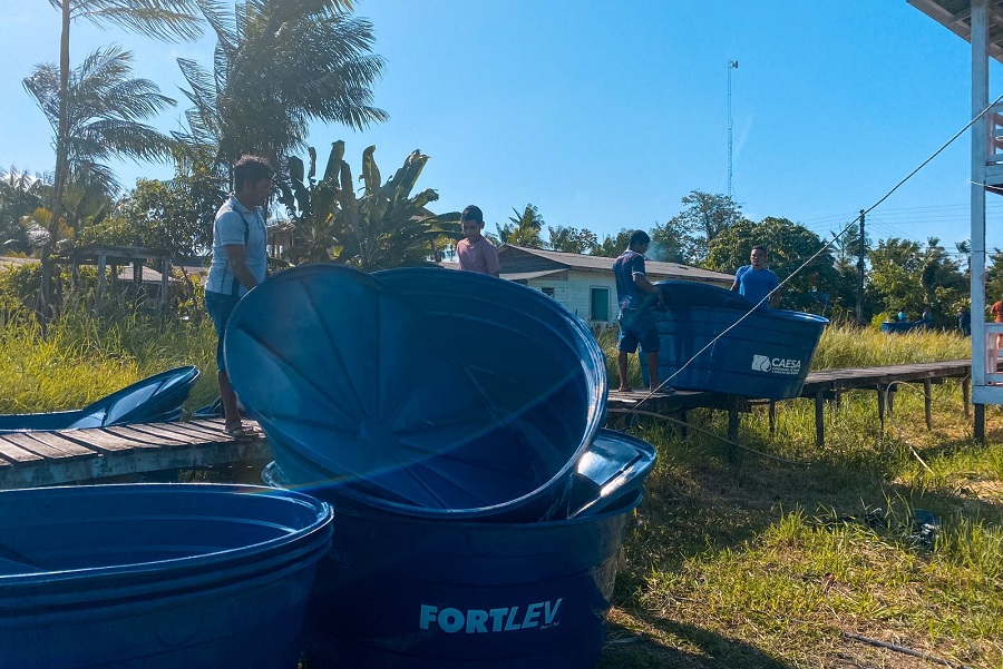 Governo do Amapá entrega mais de 300 caixas d’água para moradores do Arquipélago Bailique. Ação faz parte das estratégias de enfrentamento da salinização do rio na comunidade.