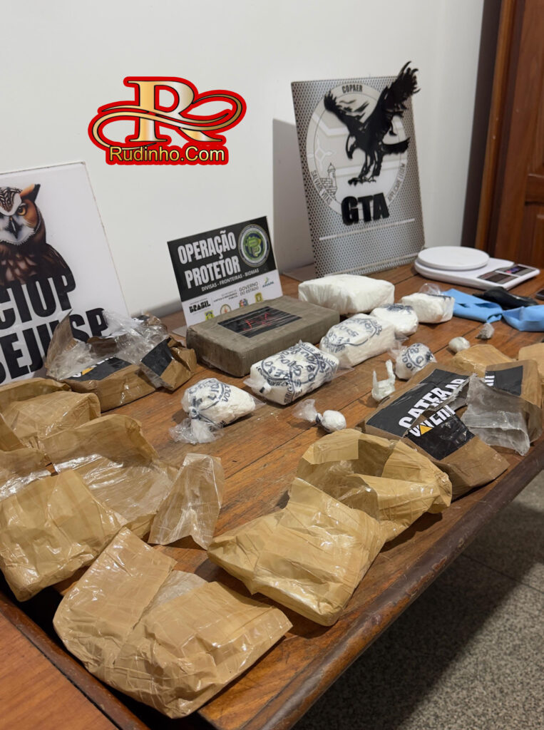 Na ação foram apreendidos uma porção pequena de crack, 1 balança de precisão, uma porção de maconha , 1 tablete grande de cocaína, 6 porções médias de cocaína , e 3 pequenas, além de embalagens usadas para fracionar drogas , e um telefone celular.