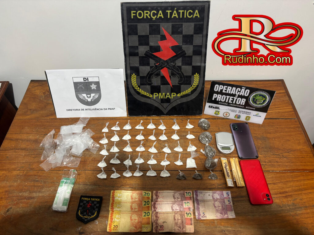 O homem abordado estava com 45 porções de entorpecentes do tipo maconha e cocaína que estavam prontas para comercializar e uma quantidade que ainda seriam fracionadas, além de valores em espécie.