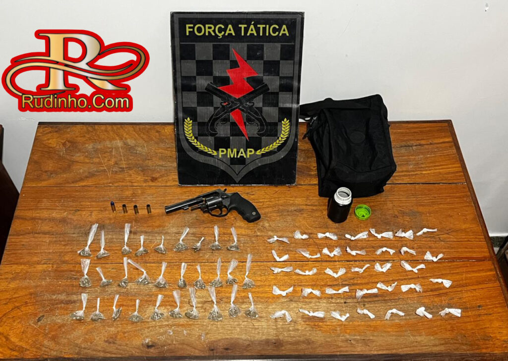 Com o criminoso foi apreendido um revólver calibre 38, com a numeração raspada, além de inúmeras porções de substâncias supostamente entorpecentes, dos tipos crack e maconha, no local inicial da denúncia.
