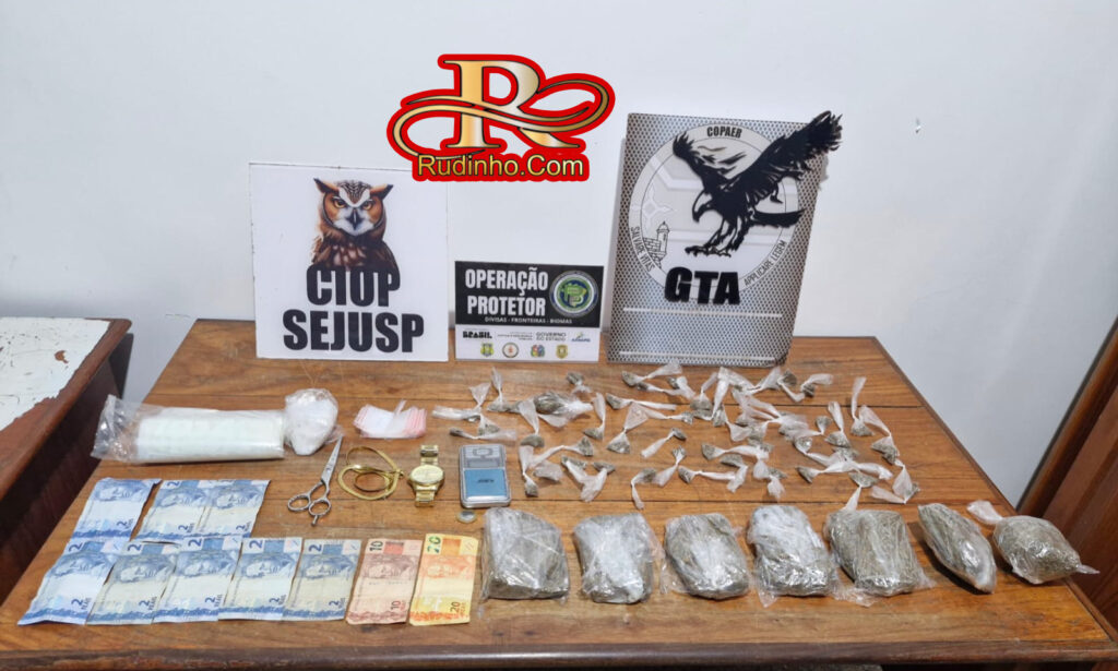 Uma equipe do Grupo Tático Aéreo (GTA) desarticulou uma base em uma residência no bairro Brasil Novo que estava sendo utilizada para comercialização de drogas .