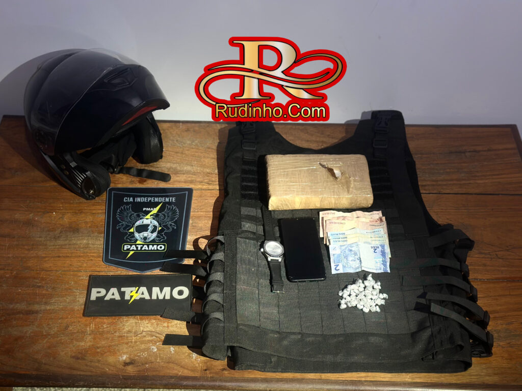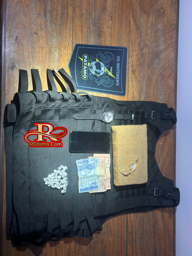 HOMEM FOI PRESO PELA PATAMO NOS CONGÓS COM TABLETE DE COCAÍNA, DINHEIRO EM ESPÉCIE E COLETE BALÍSTICO.