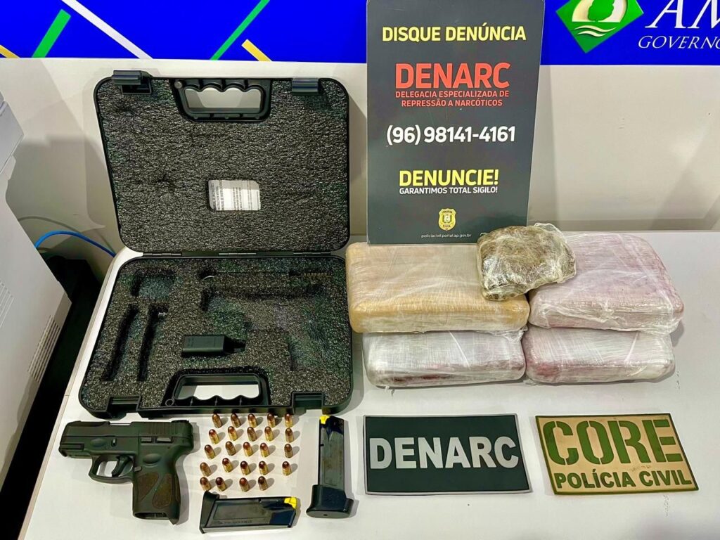 Na noite desta segunda-feira, 20, a Polícia Civil do Estado do Amapá, por meio Delegacia Especializada de Repressão a Narcóticos (DENARC), com apoio da Coordenadoria de Operações e Recursos Especiais (CORE) prendeu um homem de 40 anos de idade e uma mulher de 45 anos de idade, em flagrante, pela prática dos crimes de tráfico de drogas e posse ilegal de arma de fogo de uso restrito.
