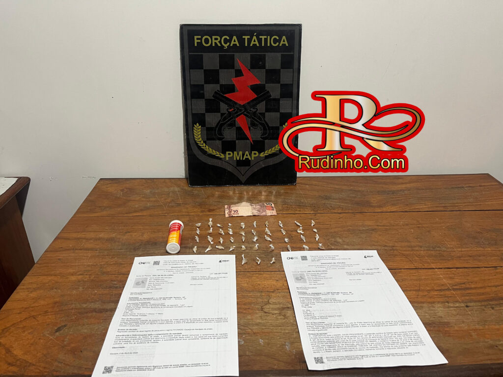 Na abordagem foram encontrados 43 porções de crack prontas para a comercialização, ele foi identificado como Joel da Silva Lopes, de 24 anos de idade, ao ser feita a busca nominal os policiais constataram que haviam dois mandados de prisão em aberto pelos crimes de roubos , com 6 boletins de ocorrência, e corrupção de menores . Além de uma condenações de mais de 25 anos de prisão a ser cumprida.