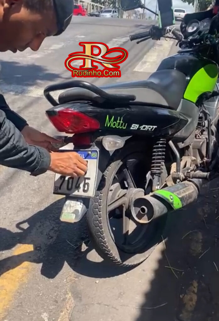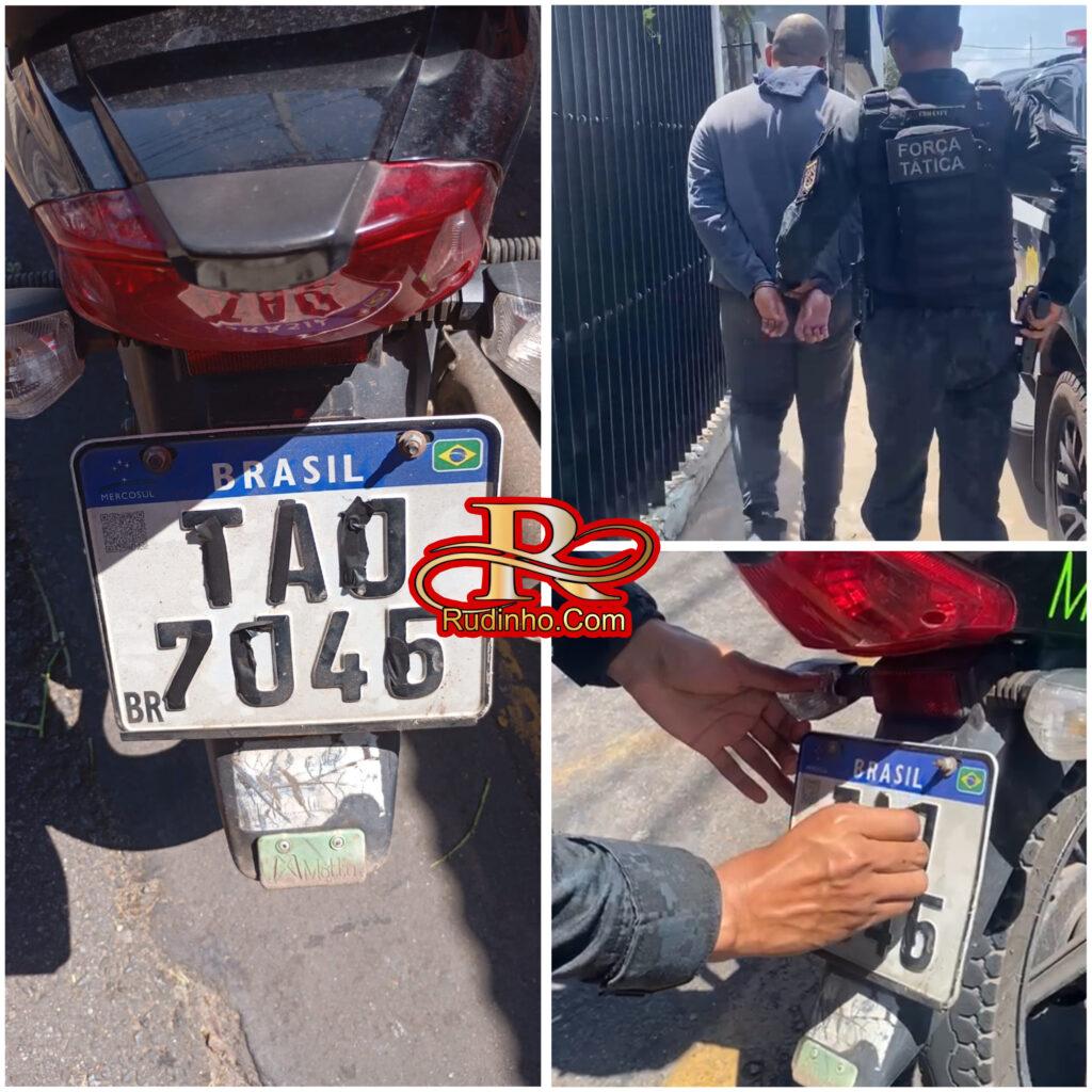 ENTREGADOR POR APLICATIVOS FOI PRESO PELA FORÇA TÁTICA COM PLACA DE MOTO ADULTERADA COM FITA ISOLANTE, ALEGANDO TER SIDO MULTADO DUAS VEZES NO MESMO DIA.