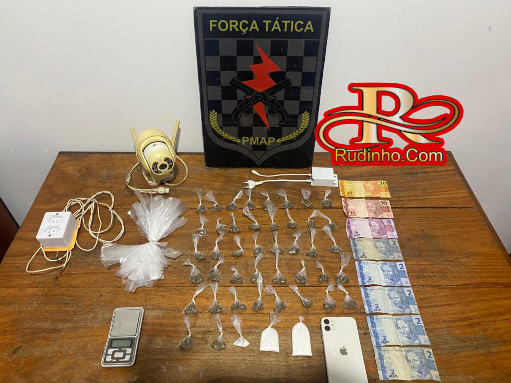 Os policiais fizeram buscas na residência e ao redor , onde foram encontrados porções de maconha , cocaína , pronta para comercialização, além de valores em espécie, balança de precisão, uma câmera de monitoramento eletrônico que seria instalada para monitorar as ações policiais no local .