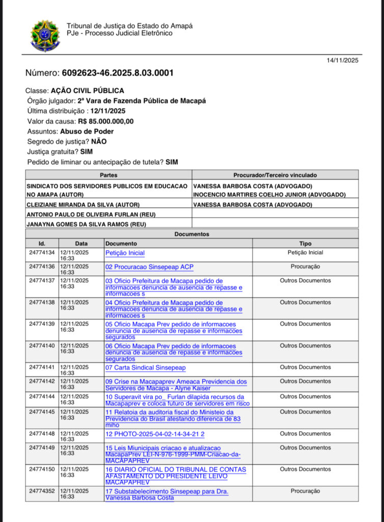 O Ministério da Previdência e o Tribunal de Contas do Amapá já haviam notificado a ausência de informações, indicando que até esses órgãos foram impedidos de fiscalizar a situação. A ação classifica o cenário como uma “escuridão informativa” criada pela gestão municipal para impedir o controle social e institucional