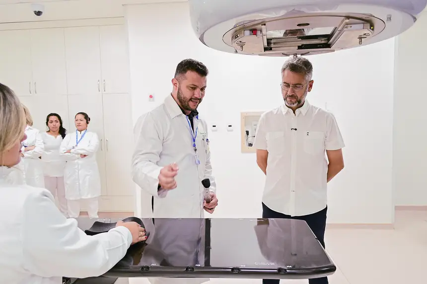 A comitiva também recebeu explicações detalhadas sobre o fluxo de atendimento, a rotina de sessões e o funcionamento operacional da unidade, que está na fase final dos preparativos para iniciar o atendimento ao público, com capacidade de 50 sessões de radioterapia por dia.