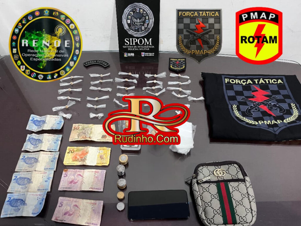 Com ele, foram encontradas porções de substâncias supostamente entorpecentes, do tipo crack, algumas prontas para a comercialização e outras que ainda seriam fracionadas.