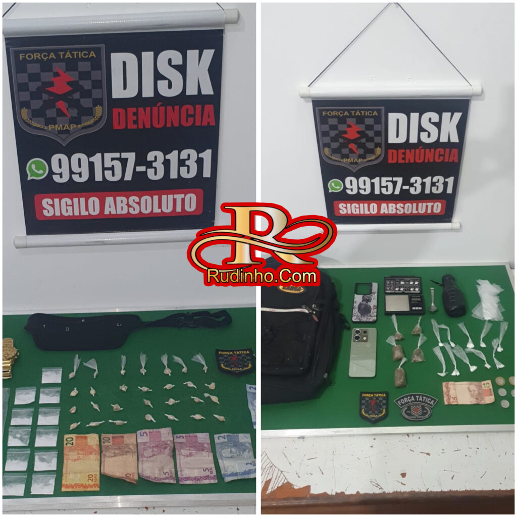 Na noite desta terça-feira 09/12, durante o patrulhamento pelo bairro do Muca zona sul da capital , dois indivíduos em atitude suspeita foram abordados pela equipe , o fato aconteceu por volta das 22:45h, com eles foram encontrados várias porções de substâncias de crack e cocaína , os homens de 29 e 31, anos de idade foram presos em flagrante.
