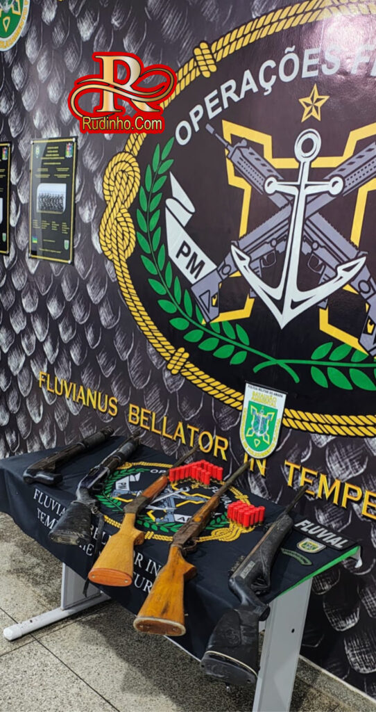 Durante as buscas em um camarote que pertencia ao proprietário da embarcação, foram encontradas 4 armas de fogo de uso permitido, do tipo espingardas, 1 ar comprimido 5.5, e 29 munições de calibre 12.