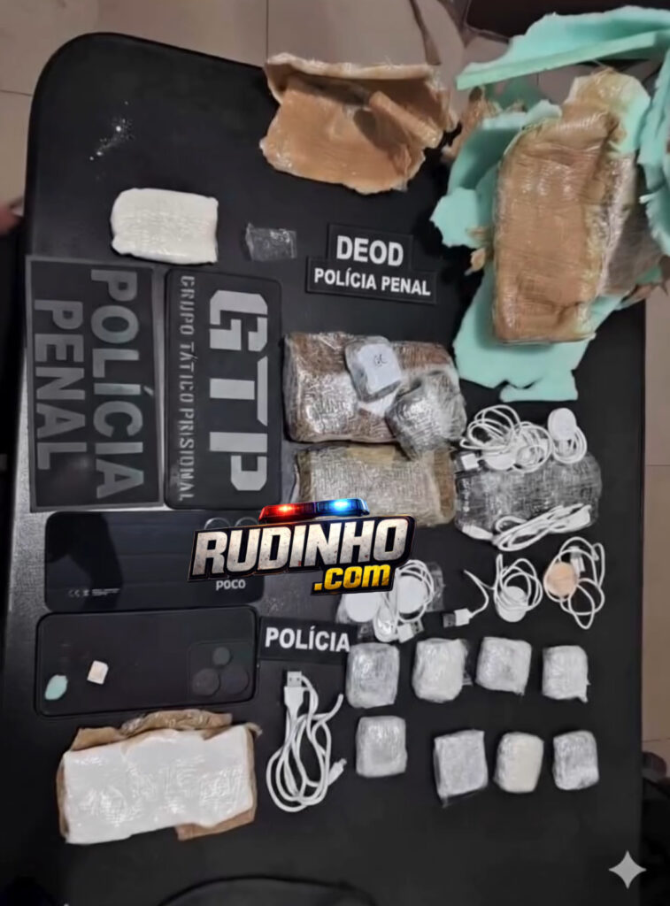Com eles foram encontrados vários materiais ilícitos, drogas , carregadores , celulares, que seriam arremessados para dentro do instituto.