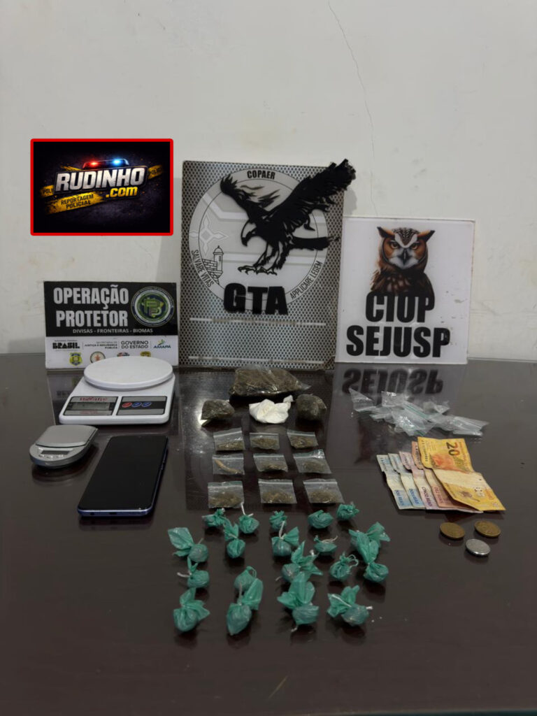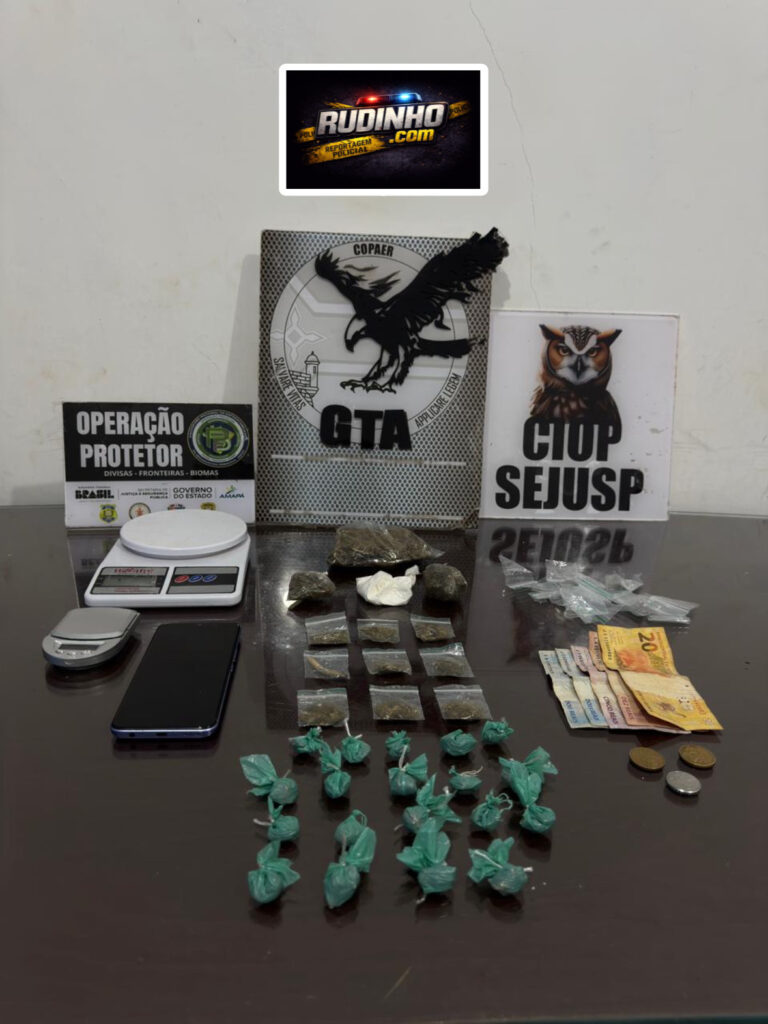 Uma equipe do Grupamento Tático Aéreo (GTA) prendeu um homem de 25 anos de idade , membro de organização criminosa , por tráfico de drogas no bairro Jardim de Deus no município de Santana .