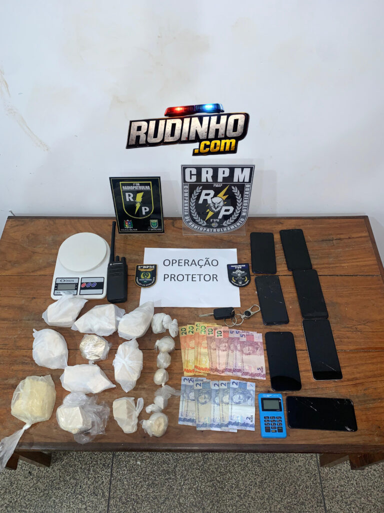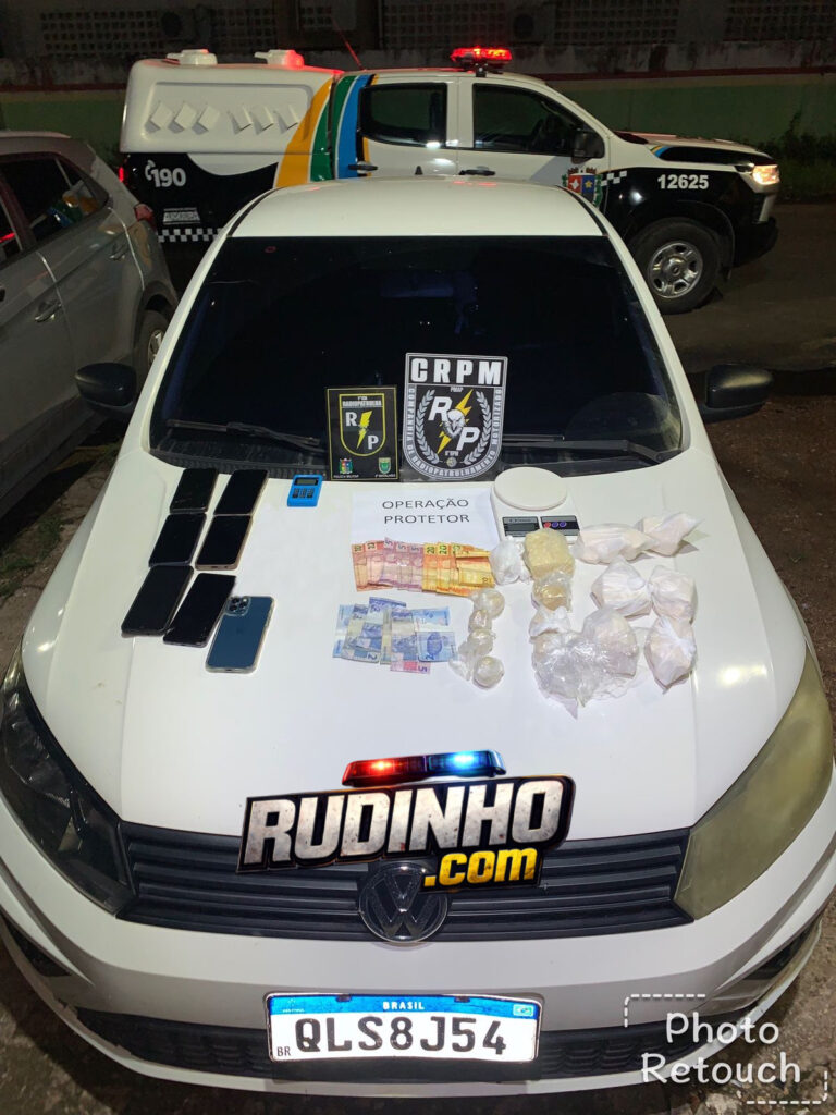 Eles foram identificados como Renan Quaresma Oliveira e Samara Souza Dias, os policiais fizeram busca domiciliar e uma mochila infantil foi encontrada dentro do guarda-roupa do casal , contendo várias porções grandes de crack , além de 7 aparelhos de telefone celulares e R$127 reais em espécie, uma máquina de cartão , um rádio comunicador, balança de precisão, materiais comumente utilizados na comercialização de drogas.