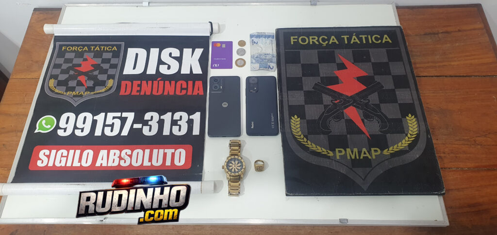 Na tarde desta segunda-feira (02.02), por volta de 16h20, uma equipe do Batalhão de Força Tática prendeu Diego Santana Gomes de 23 anos pelo crime de roubo e uma mulher de 31 anos pelo crime de receptação no bairro Pacoval, zona norte de Macapá.
