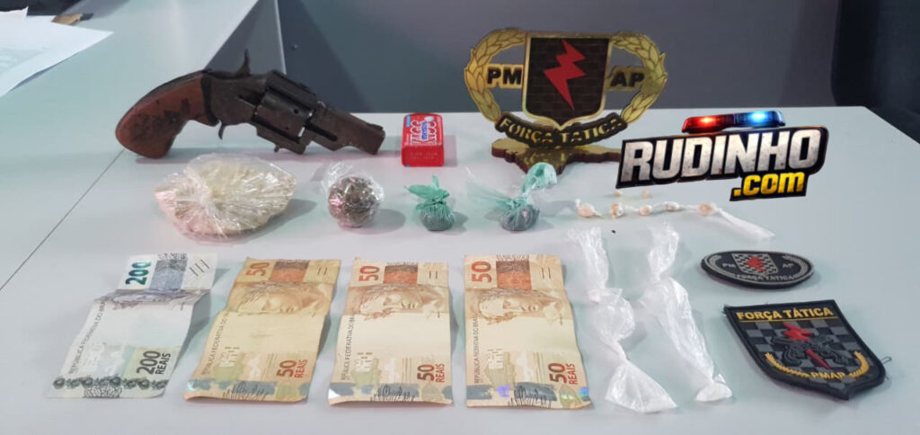 Com o criminoso de 17 anos, foi encontrado uma arma de fogo de fabricação artesanal. No local também foram apreendidas diversas porções de substâncias supostamente entorpecentes do tipo maconha, crack e cocaína.