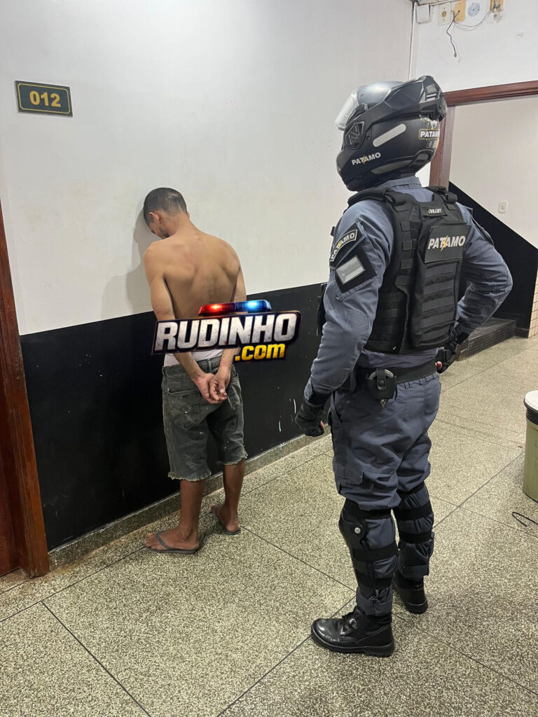 Após ato criminoso um homem foi preso no loteamento Terra Nova , com uma faca e um telefone celular que acabará de subtrair da vítima.
