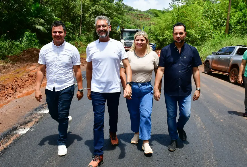 “Mais uma parceria que deu certo. Está acontecendo a pavimentação do ramal que liga a sede de Serra do Navio até a Colônia de Água Branca. Isso aqui era um sonho da comunidade. Além da pavimentação, vai ter a sinalização também de todo esse ramal, para que as pessoas possam transitar com segurança”, citou Clécio Luís.