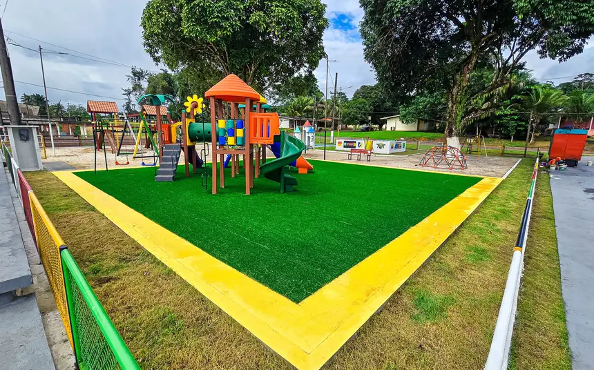 No espaço, o Governo realizou serviços de limpeza e retirada de estruturas comprometidas, implantação de iluminação em LED, melhorias nos sistemas de drenagem, esgoto e rede elétrica, além de pintura geral, execução de calçadas com acessibilidade e preparação do solo com grama natural e sintética. O projeto também incluiu paisagismo, instalação de equipamentos de lazer, estruturas em alambrado e requalificação de áreas de convivência.