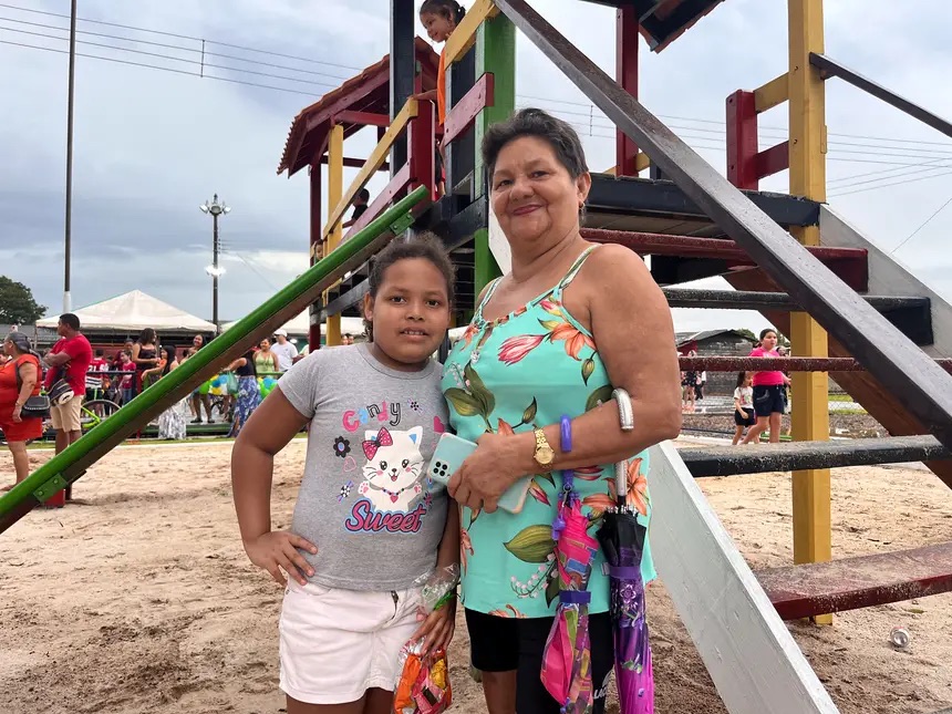 “Essa nossa praça estava bem feia, estava sem vida, e agora estou achando linda, maravilhosa para as nossas crianças. Minha neta já aproveitou bastante e, como nós moramos na comunidade da Colônia de Água Branca, a gente vem pra fazer mais vezes esse passeio pra cá e se divertir”, celebrou Fátima Ferreira, de 59 anos, que levou a neta de 9 anos para conhecer a nova estrutura.