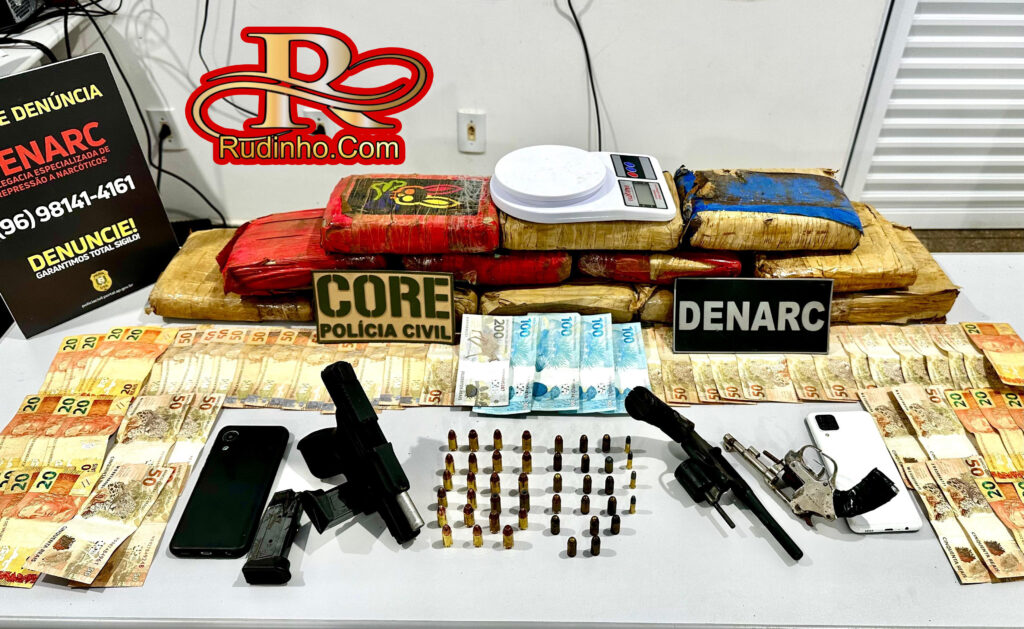 DENARC FEZ APREENSÃO DE 8 KG DE DROGAS, DUAS ARMAS DE FOGO E MUNIÇÕES NO BECO DA CPA. UM HOMEM FOI PRESO NA AÇÃO.