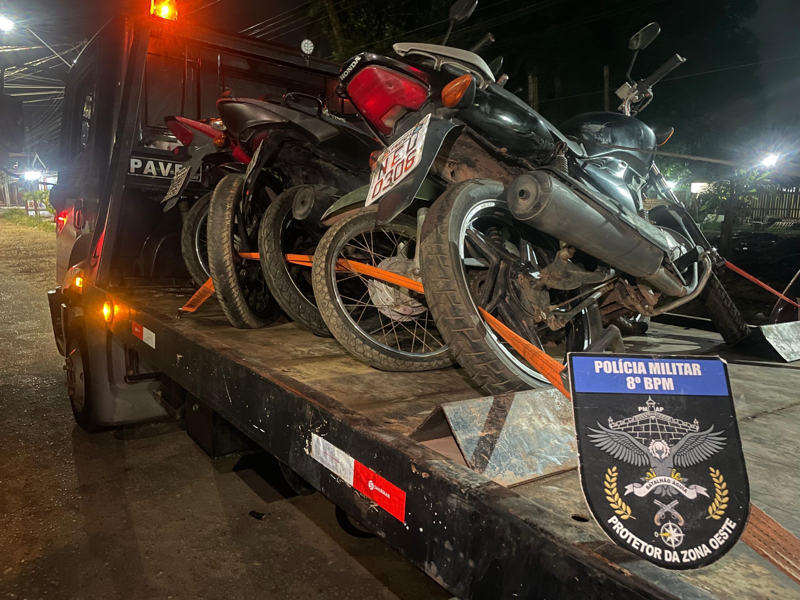 EM AÇÃO CONJUNTA, EQUIPE DE INTELIGÊNCIA DO 8° BPM E EQUIPE DE RP REALIZARAM MAIS UMA APREENSÃO DE MOTOCICLETAS FURTADAS DO PÁTIO DO DEPARTAMENTO DE TRÂNSITO, FORAM DESCOBERTAS MAIS 5 MOTOS QUE ESTAVAM NAS MÃOS DA QUADRILHA.
