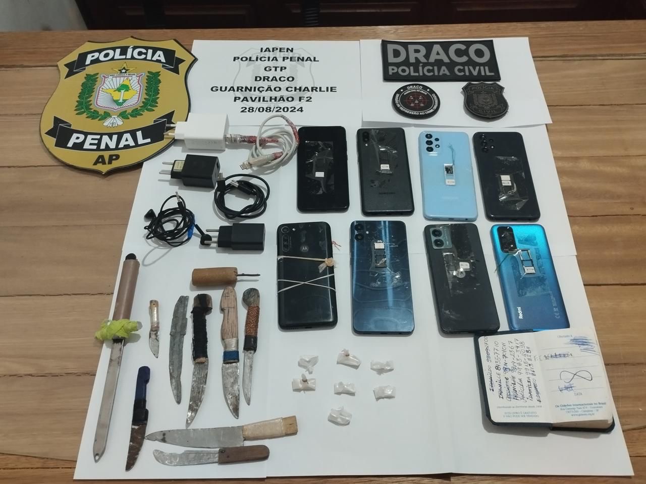 POLÍCIA CIVIL (DRACO) E POLÍCIA PENAL DEFLAGRARAM OPERAÇÃO DENTRO DO IAPEN E APREENDERAM DROGAS, 8 CELULARES E ARMAS BRANCAS . O ALVO UM INTERNO PRESO HÁ 4 ANOS QUE COMANDAVA A COMERCIALIZAÇÃO E ARRECADAÇÃO DA ORGANIZAÇÃO CRIMINOSA E AINDA HOMICÍDIOS FORA DA CADEIA.