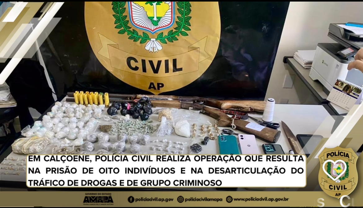 EM OPERAÇÃO A POLÍCIA CIVIL DE CALÇOENE PRENDE OITO PESSOAS DESARTICULA GRUPO CRIMINOSO E APREENDE VÁRIAS PORÇÕES DE COCAÍNA, MACONHA, SKANK, DUAS ARMAS DE FOGO, MUNIÇÕES E CELULARES.