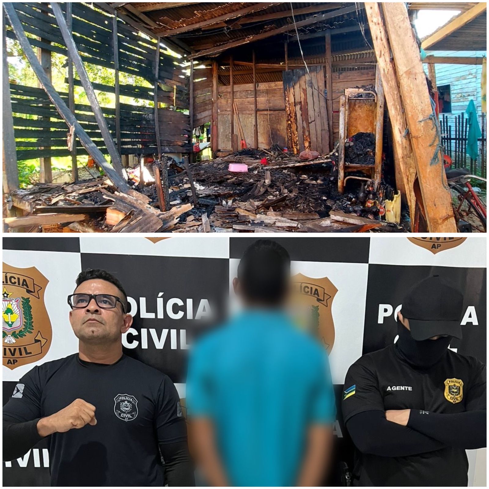 NO MUNICÍPIO DE AMAPÁ, INDIVÍDUO QUE CAUSOU INCÊNDIO NA CASA DA PRÓPRIA MÃE É PRESO EM FLAGRANTE PELA POLÍCIA CIVIL
