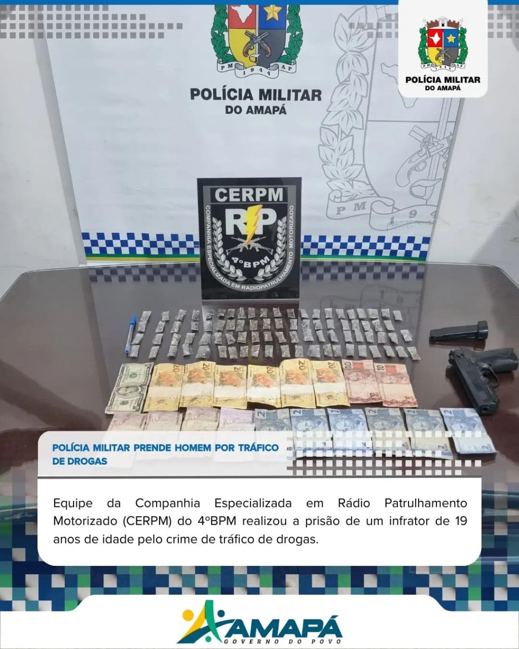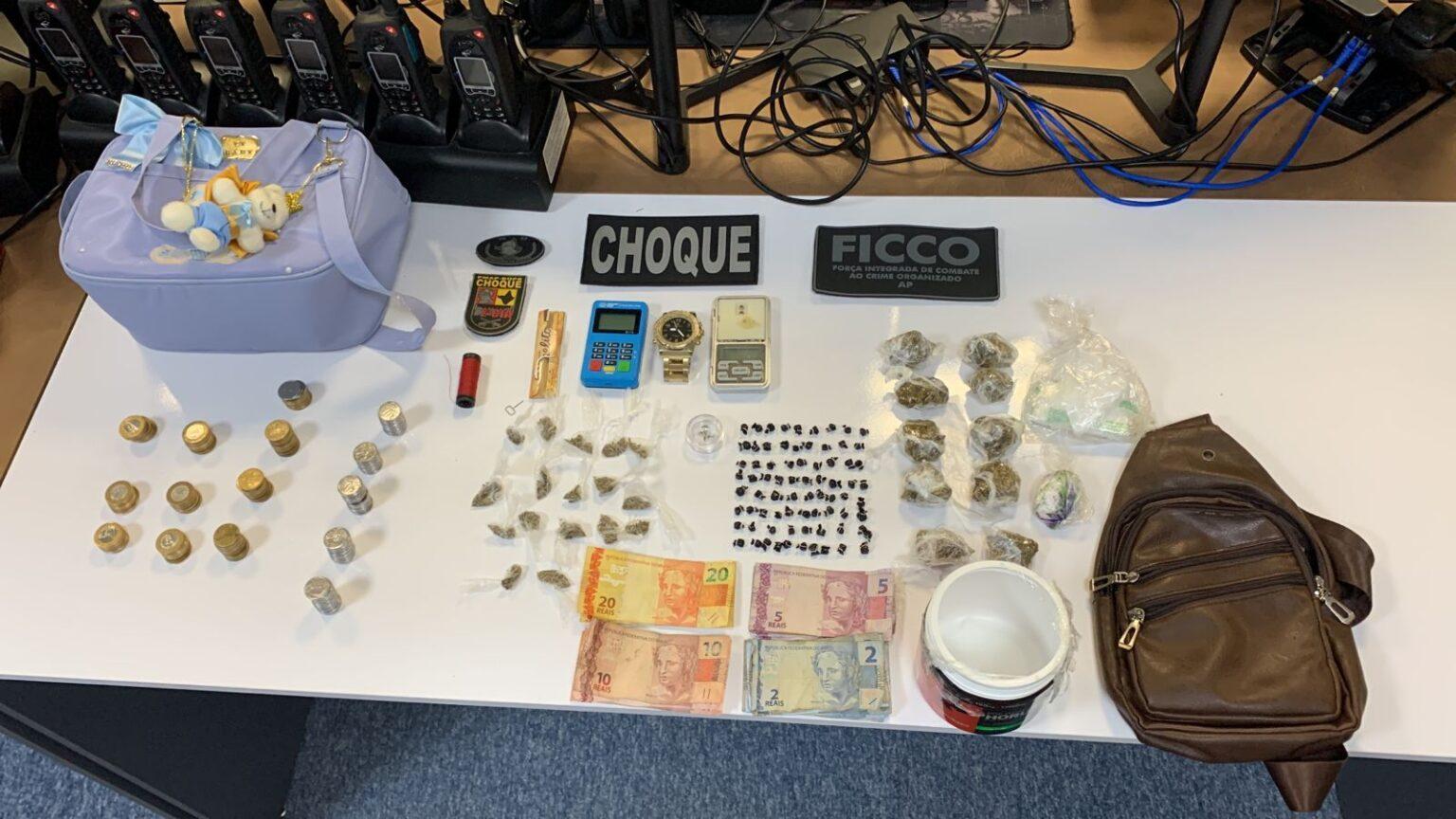 Na ocasião, entre outras coisas foram apreendidos 27 pequenas porções embaladas de maconha, 76 pequenas porções embaladas de crack, R$ 290 em dinheiro e balança ...