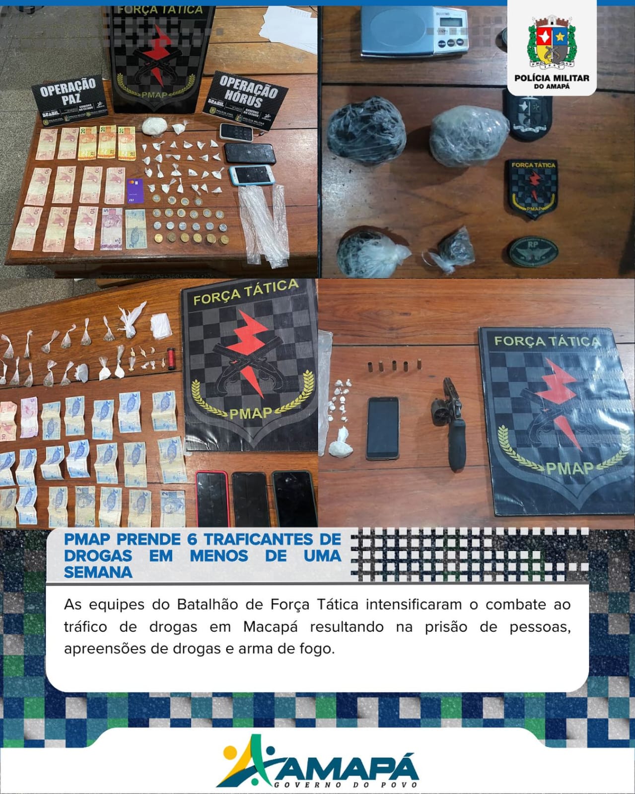 As equipes do Batalhão de Força Tática intensificaram o combate ao tráfico de drogas em Macapá resultando na prisão de pessoas, apreensões de drogas e ...