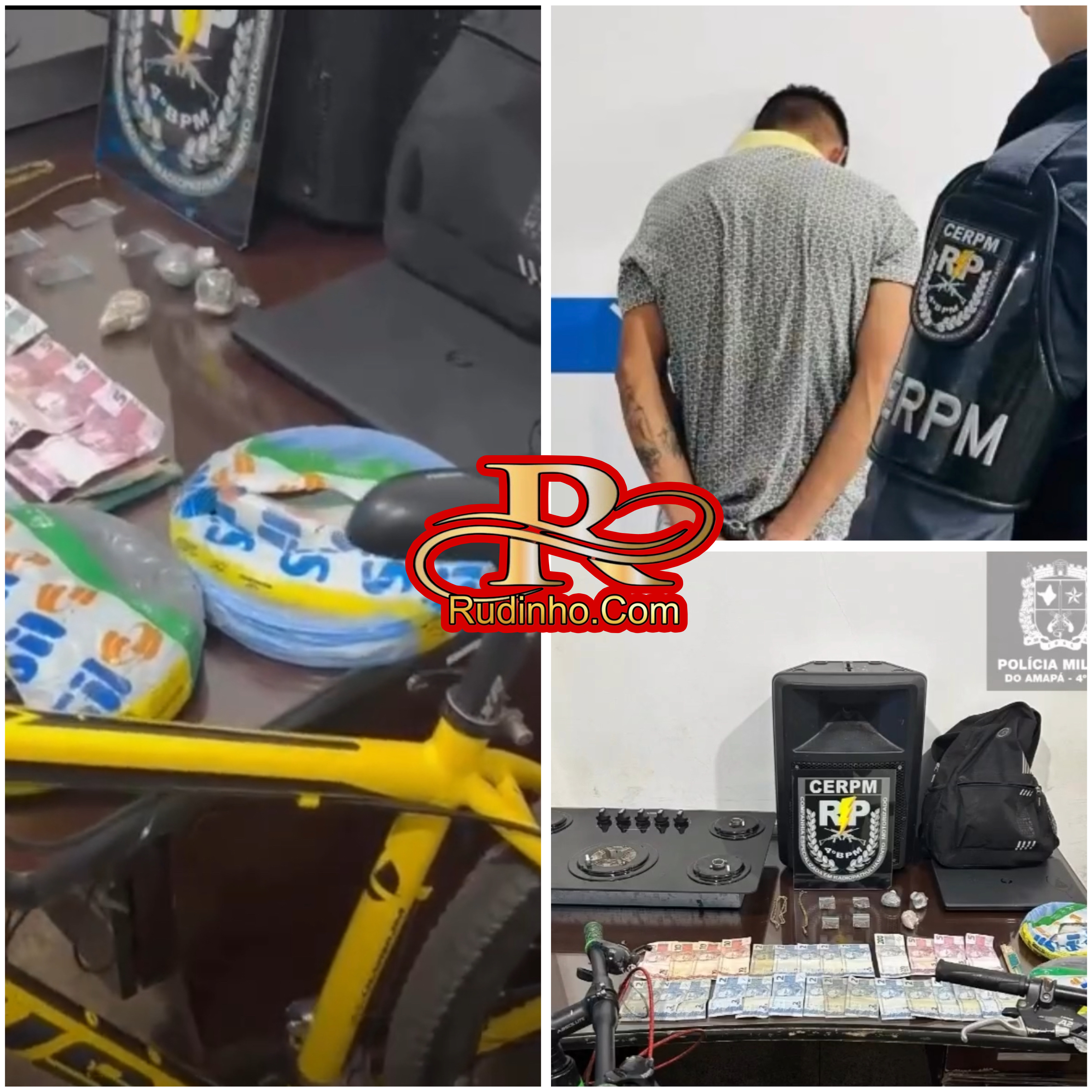 HOMEM FOI PRESO PELO 4º BATALHÃO COM DROGAS , VALORES EM ESPÉCIE, FOGÃO E DUAS BICICLETAS, NO MUNICÍPIO DE SANTANA.