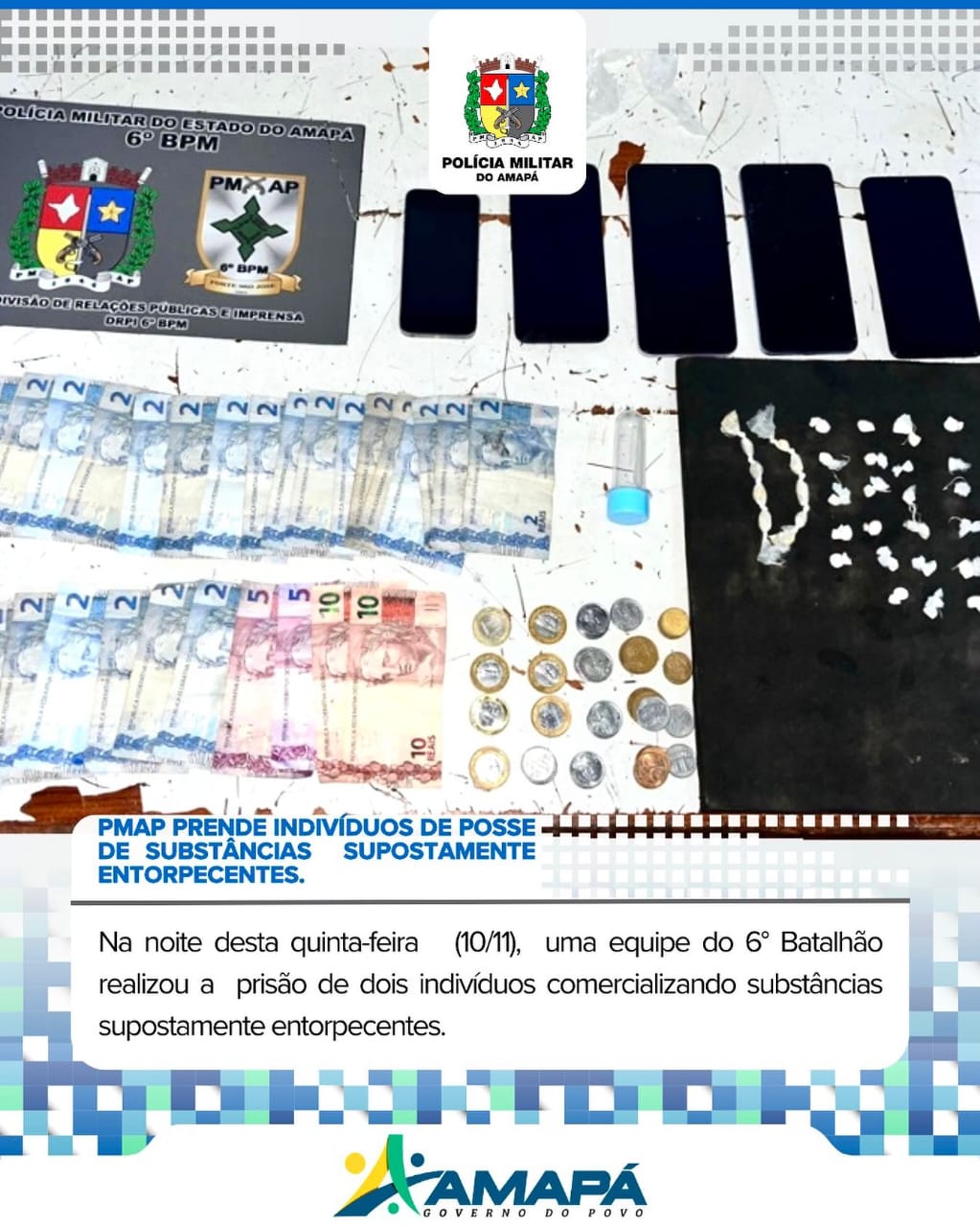 Na noite desta quinta-feira (10/11), uma equipe do 6°Batalhão realizou a prisão de dois indivíduos comercializando substâncias supostamente entorpecentes. Equipe do 6º Batalhão estava em ...