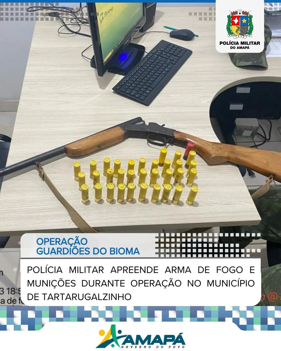 Na tarde de ontem (25), uma equipe da Polícia Militar apreendeu uma arma de fogo (espingarda) e 34 munições intactas, durante operação Guardiões do Bioma ...