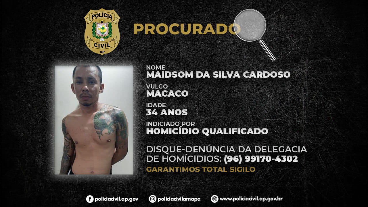 A Polícia Civil do Estado do Amapá pede a ajuda da população com informações sobre o paradeiro de Maidson da Silva Cardoso, de 34 anos ...
