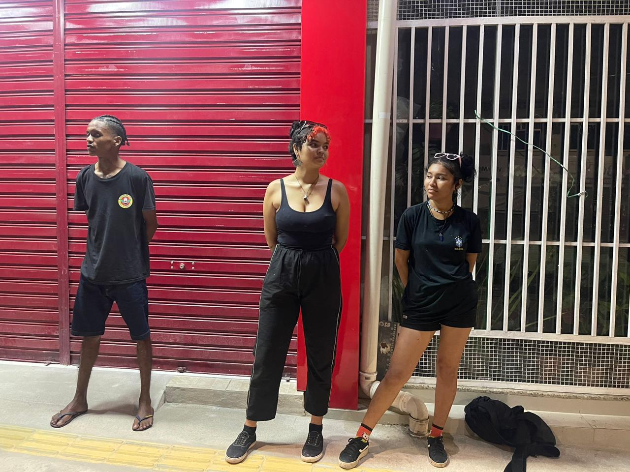 TRÊS INDIVÍDUOS FORAM PRESOS EM FLAGRANTE PELA POLÍCIA MILITAR POR PICHAÇÃO, CRIME AMBIENTAL E VANDALISMO PREVISTO NO ARTIGO 65 DA LEI 9.605/98.