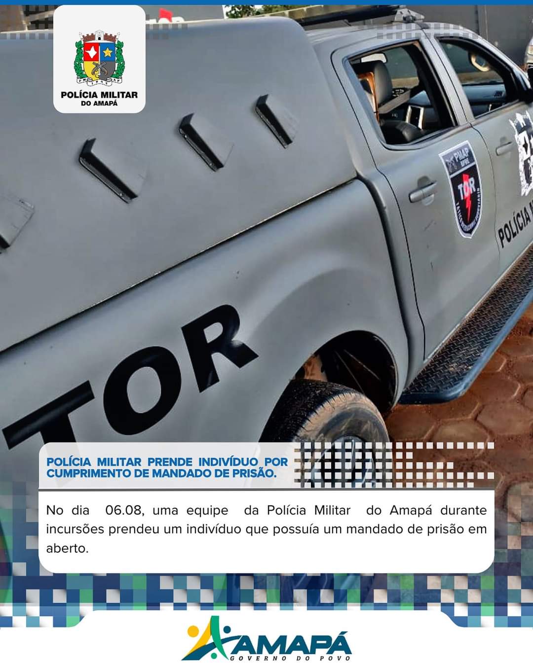 POLÍCIA MILITAR DO AMAPÁ PRENDE INDIVÍDUO POR CUMPRIMENTO DE MANDADO DE PRISÃO.