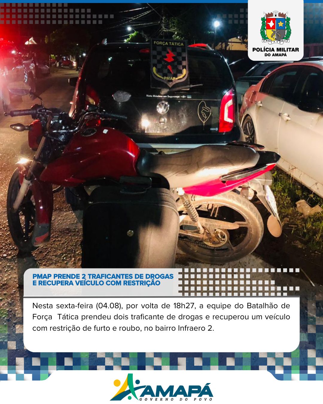 Disque denúncia do Batalhão de Força Tática:📲99157-3131 (WhatsApp)Emergência:📲190 Curtam, compartilhem e sigam nossas páginas nas redes sociais:Instagram/Facebook: policiamilitardoamapaInstagram/Facebook: forcatatica.pmap Polícia Militar do Amapá – 10° ...