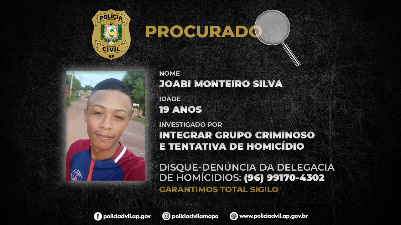 EM MACAPÁ, POLÍCIA CIVIL CONCLUI INQUÉRITO POLICIAL E PEDE AJUDA DA POPULAÇÃO PARA LOCALIZAR INDIVÍDUO INDICIADO POR INTEGRAR GRUPO CRIMINOSO E POR TENTATIVA DE HOMICÍDIO