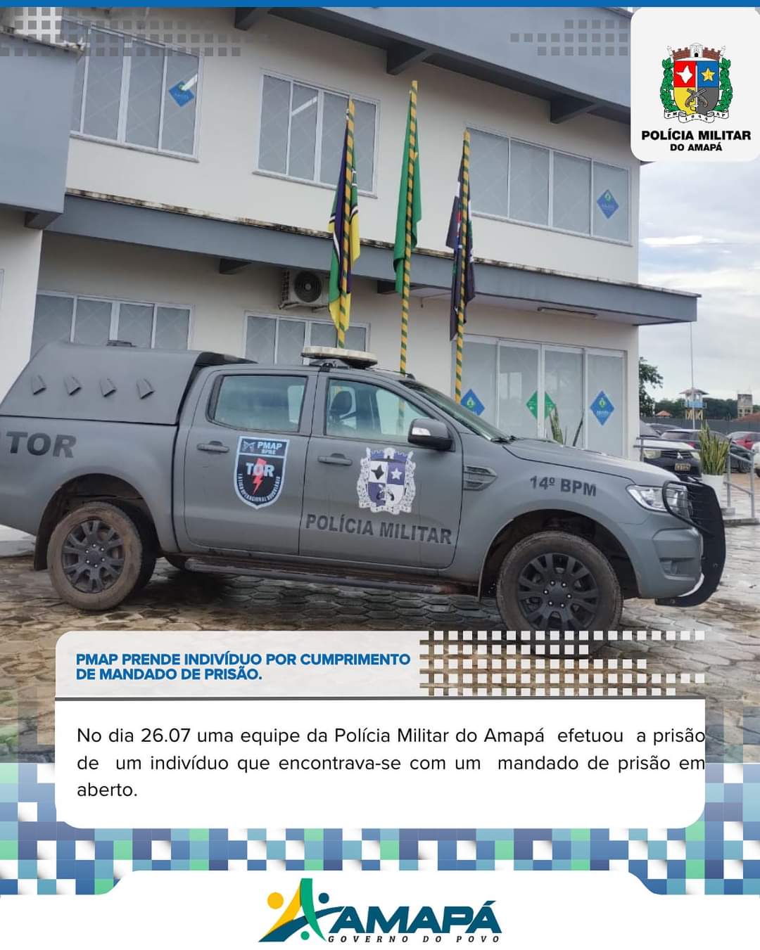 POLÍCIA MILITAR DO AMAPÁ PRENDE INDIVÍDUO POR CUMPRIMENTO DE MANDADO DE PRISÃO.