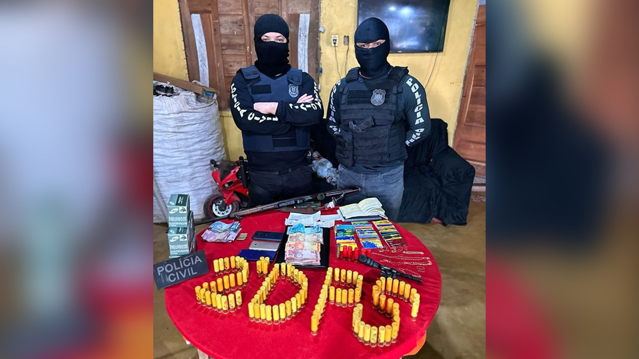 EM SANTANA, POLÍCIA CIVIL PRENDE UM INDIVÍDUO ACUSADO POR ROUBO E APREENDE DUAS ARMAS DE FOGO, 119 MUNIÇÕES, DINHEIRO, CELULARES E MAIS DE 100 CARTÕES BANCÁRIOS