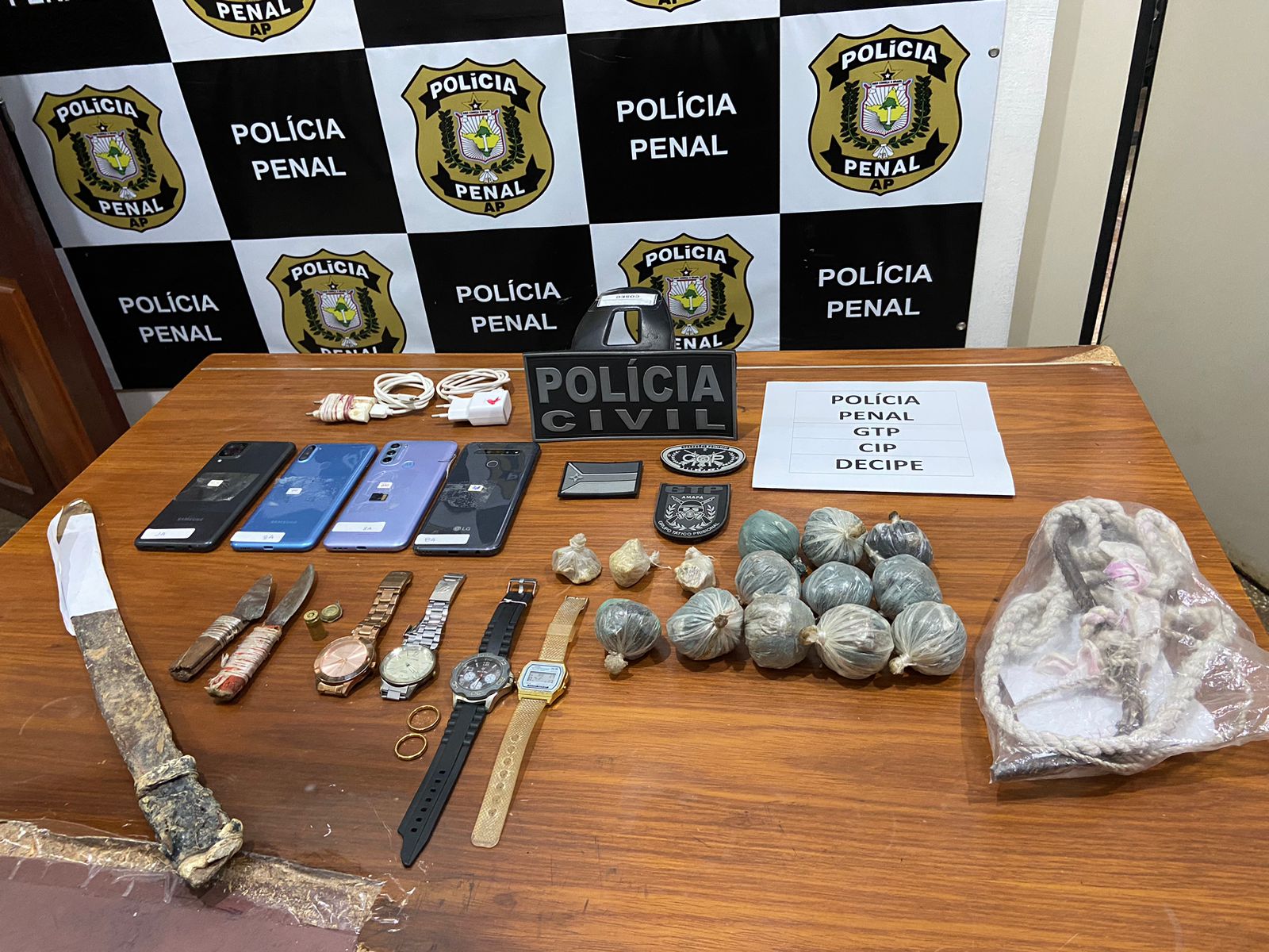 POLÍCIA CIVIL CUMPRE MANDADO DE BUSCA E APREENDE CELULARES, DROGAS E ARMAS BRANCAS EM PAVILHÃO DO IAPEN.