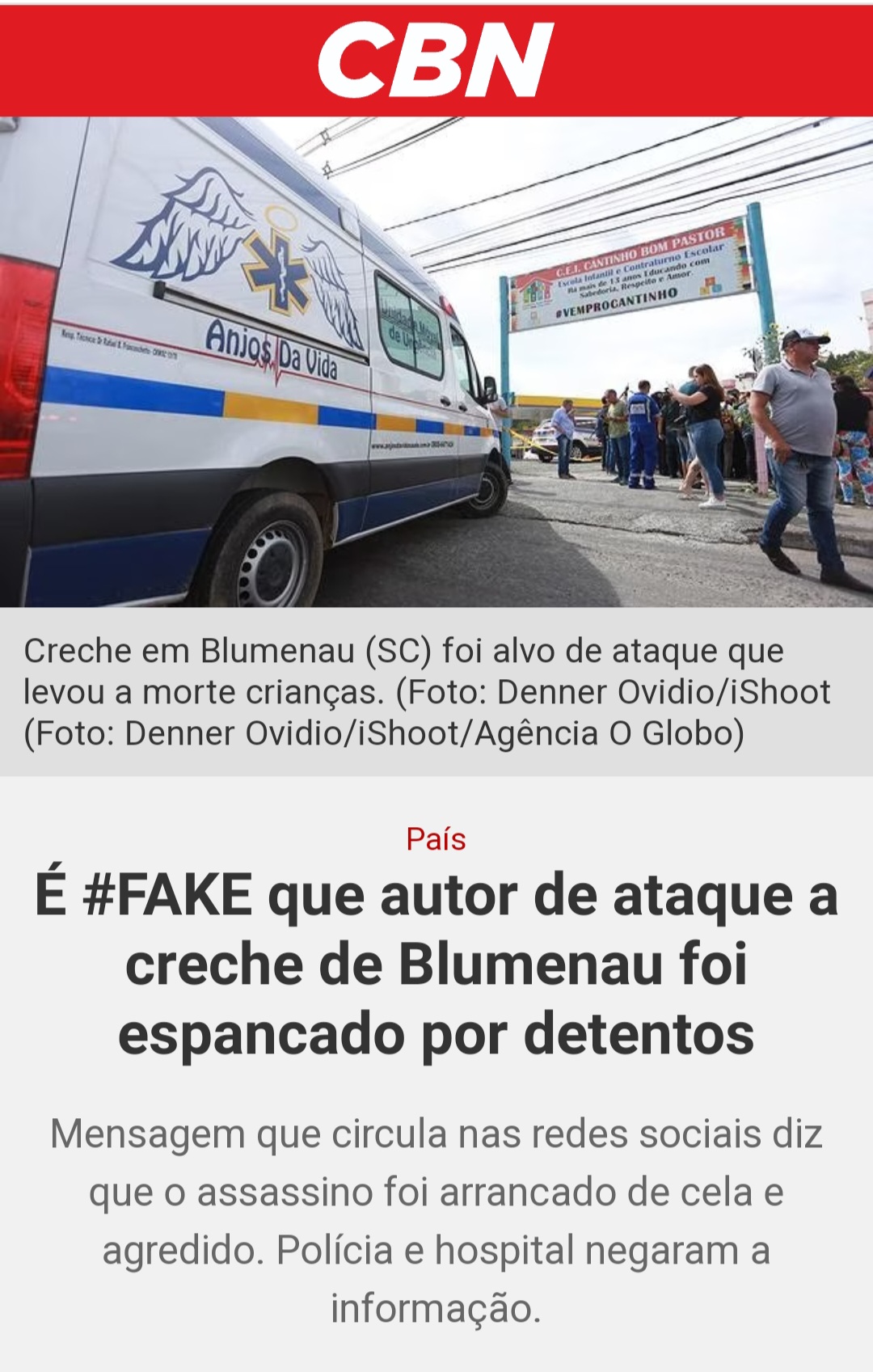 É #FAKE que autor de ataque a creche de Blumenau foi espancado por detentos