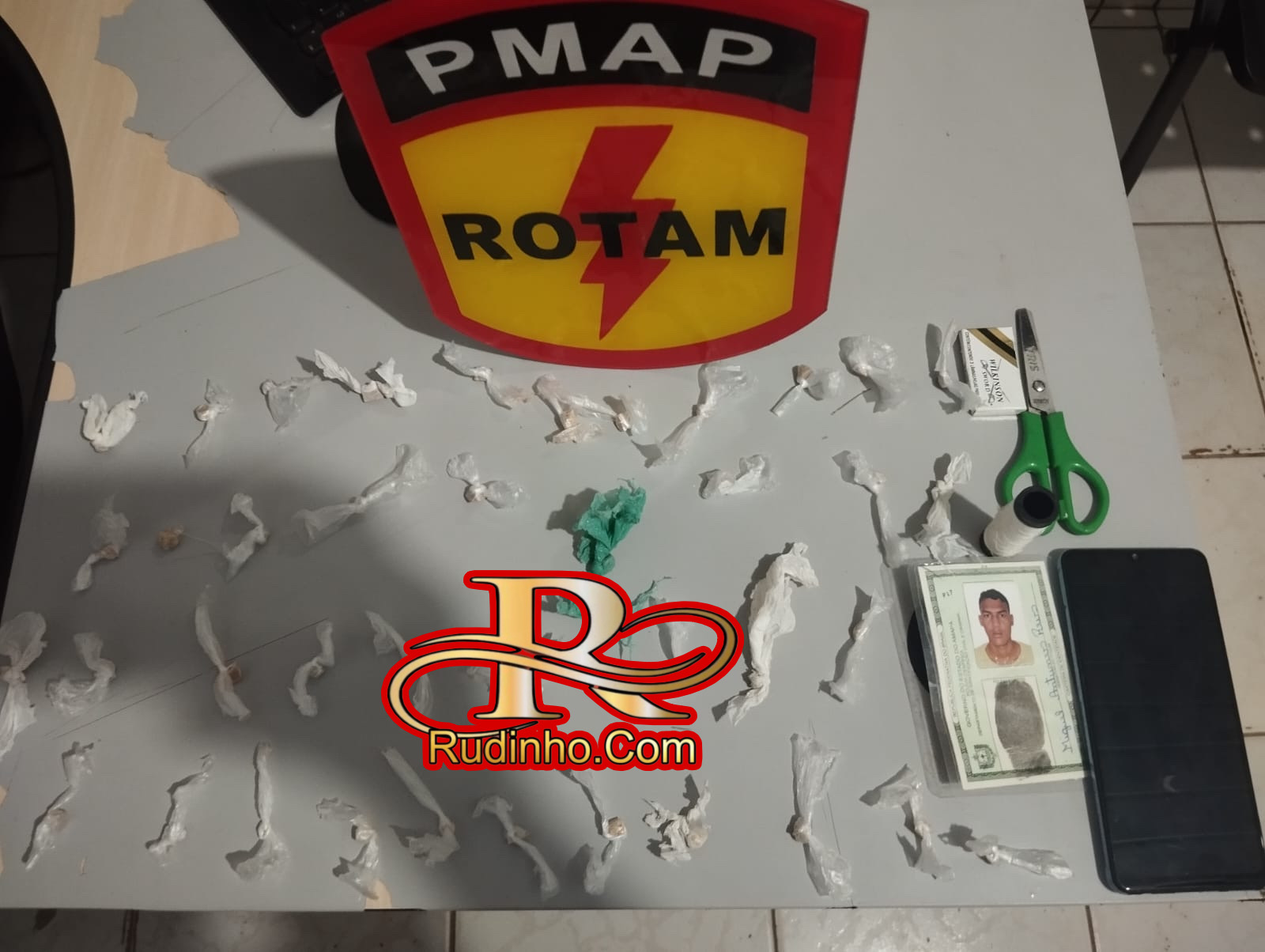 “PALHACINHO” FOI PRESO EM FLAGRANTE POR TRÁFICO DE DROGAS PELA EQUIPE DE ROTAM EM PEDRA BRANCA DO AMAPARI.