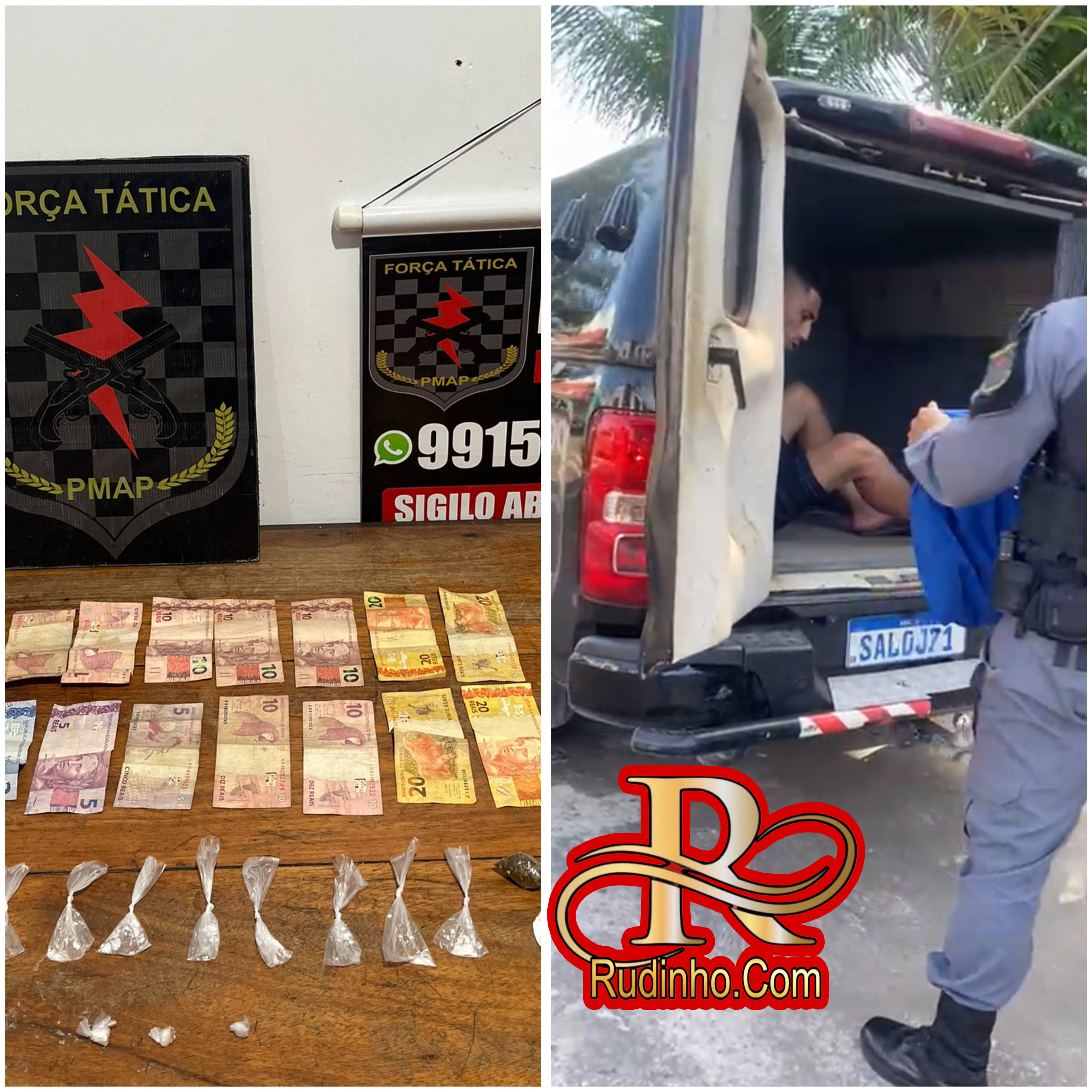 DETENTO DO REGIME DOMICILIAR COM PASSAGEM POR TRÁFICO DE DROGAS, ROUBO E RECEPTAÇÃO, FOI PRESO PELA FORÇA TÁTICA COMERCIALIZANDO ENTORPECENTES NO MACAPABA.