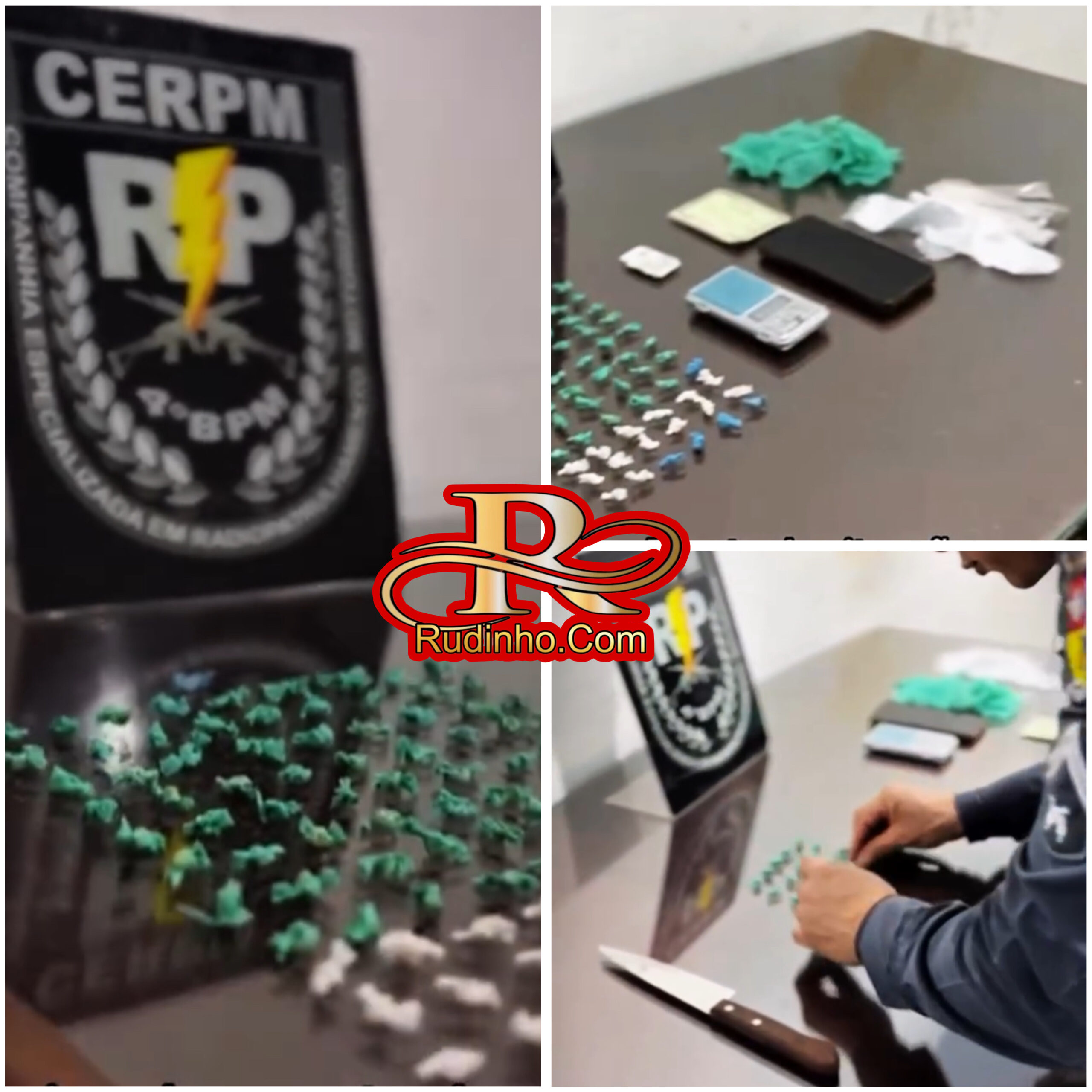 4º BATALHÃO FOI ACIONADO PARA ATENDER OCORRÊNCIA DE VIOLÊNCIA DOMÉSTICA E ACABA FAZENDO APREENSÃO DE 100 PAPELOTES DE DROGAS NO BAIRRO MONTE DAS OLIVEIRAS EM SANTANA .