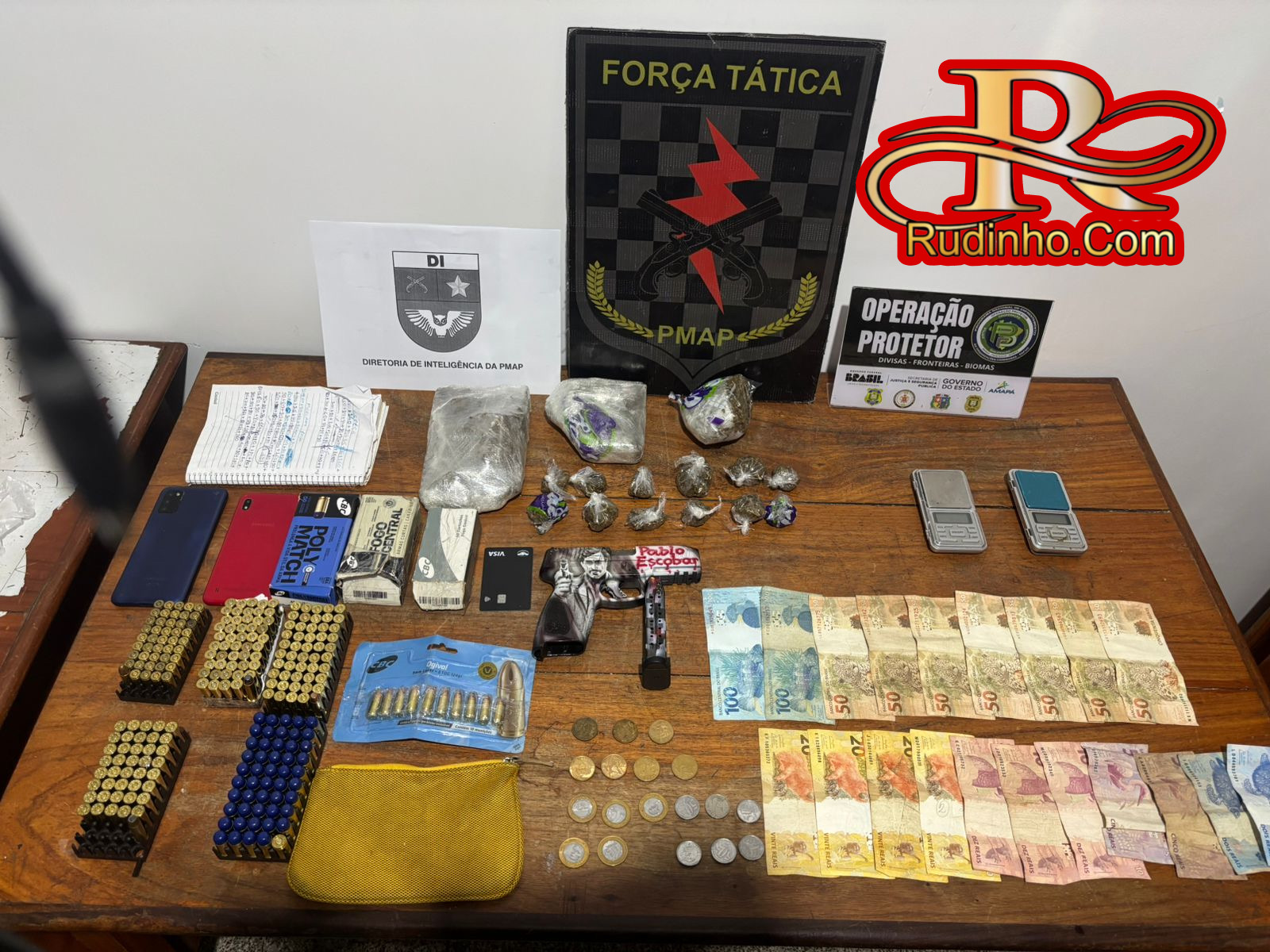 FORAGIDO DE JUSTIÇA PERTENCENTE A UMA FACÇÃO CRIMINOSA DE SÃO PAULO FOI PRESO PELA FORÇA TÁTICA NO MARABAIXO III. DROGAS, ARMA DE FOGO E MUNIÇÕES FORAM APRENDIDAS NA AÇÃO .